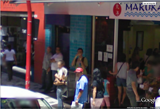 Em 30/09/10 o serviço estréia no Brasil. E o primeiro lugar que eu vou conferir é a Rua Galvão Bueno. Olha quem estava lá, com o rosto borrado, com o celular em mãos ?
